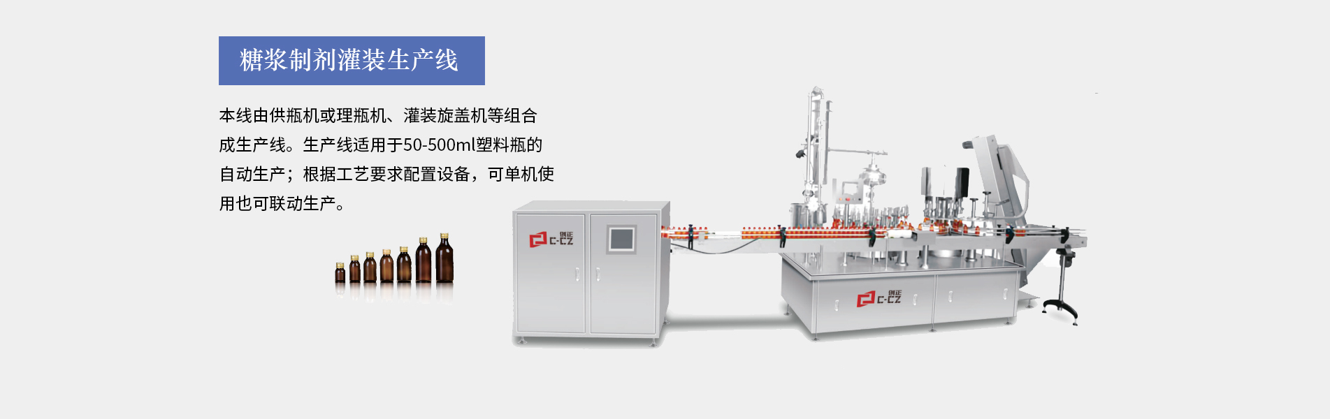 糖漿灌裝生產(chǎn)線適合30ML以上口服液的灌裝生產(chǎn),由供瓶機(jī)、直線式灌裝軋(旋)蓋機(jī)、立式貼標(biāo)機(jī)等設(shè)備組成,可全自動(dòng)完成灌裝、上蓋、旋(軋)蓋、貼標(biāo)等工序。主要用于制藥、食品、化工的的各種液體物料的灌裝聯(lián)動(dòng)生產(chǎn)。本生產(chǎn)線完全符合GMP要求。糖漿灌裝生產(chǎn)線特點(diǎn)裝量特征:無滴漏、不起泡、不飛濺。運(yùn)行特征:運(yùn)行穩(wěn)定,噪音小;灌裝精確,能耗少,破瓶率低,成品合格率高性能特征:整條生產(chǎn)線可單機(jī)控制和聯(lián)鎖控制。洗瓶...